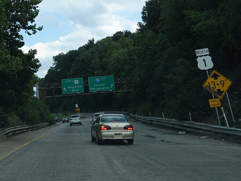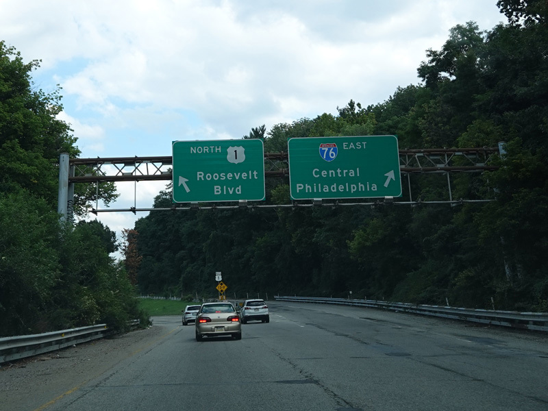 US 1 merges with ramps from the westbound Schuylkill Expressway (I-76) to form the Roosevelt Expressway.