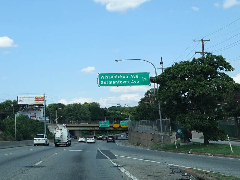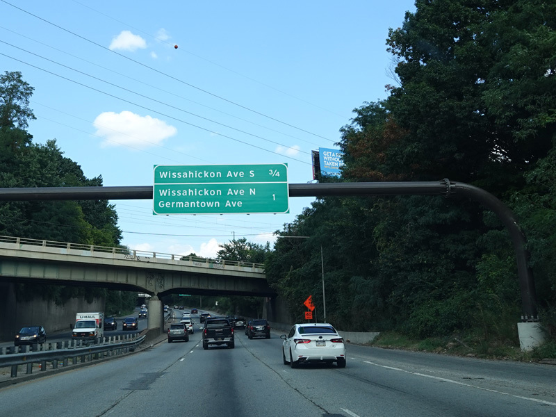 There is an exit for Wissahickon Avenue south and Hunting Park Avenue (US 13). The route number is not posted here.