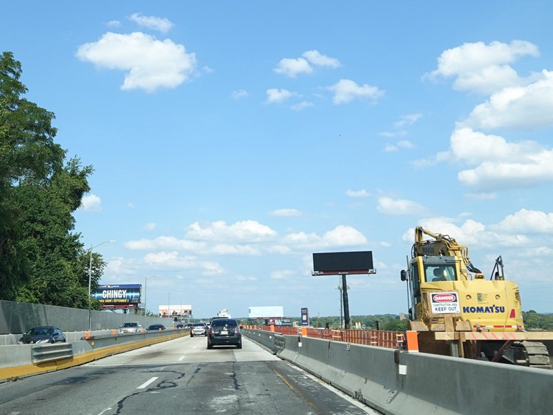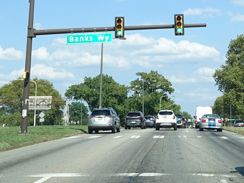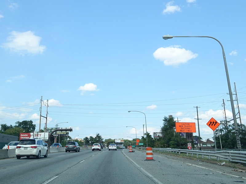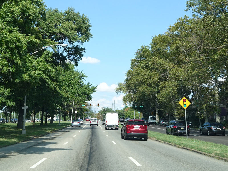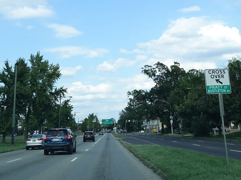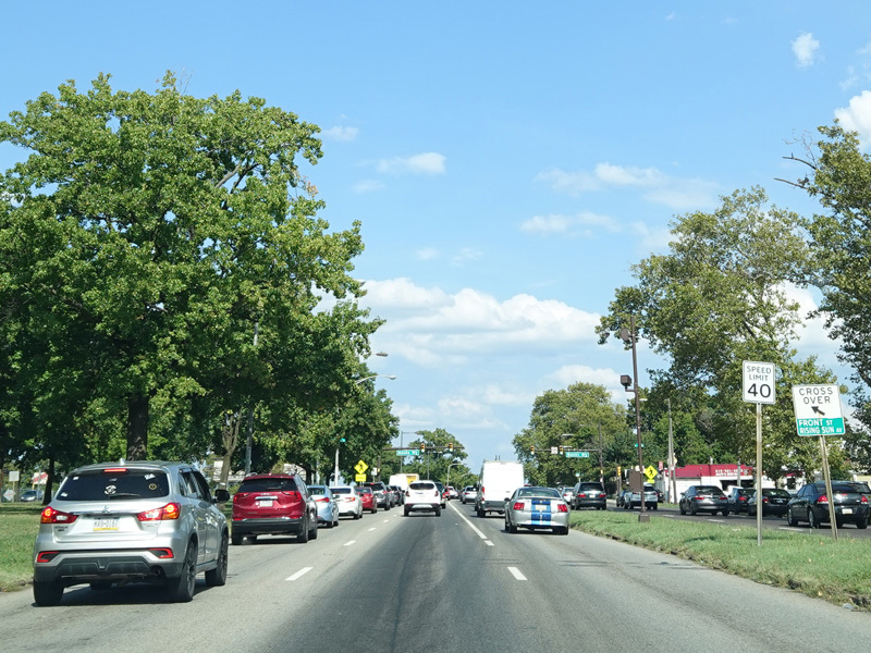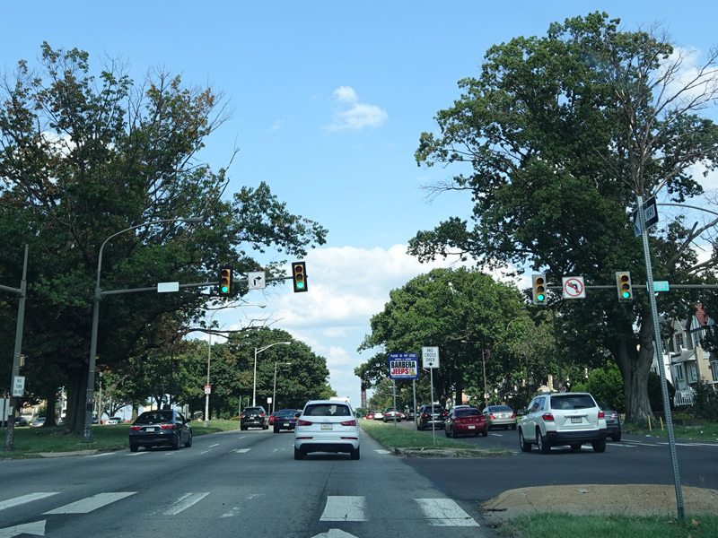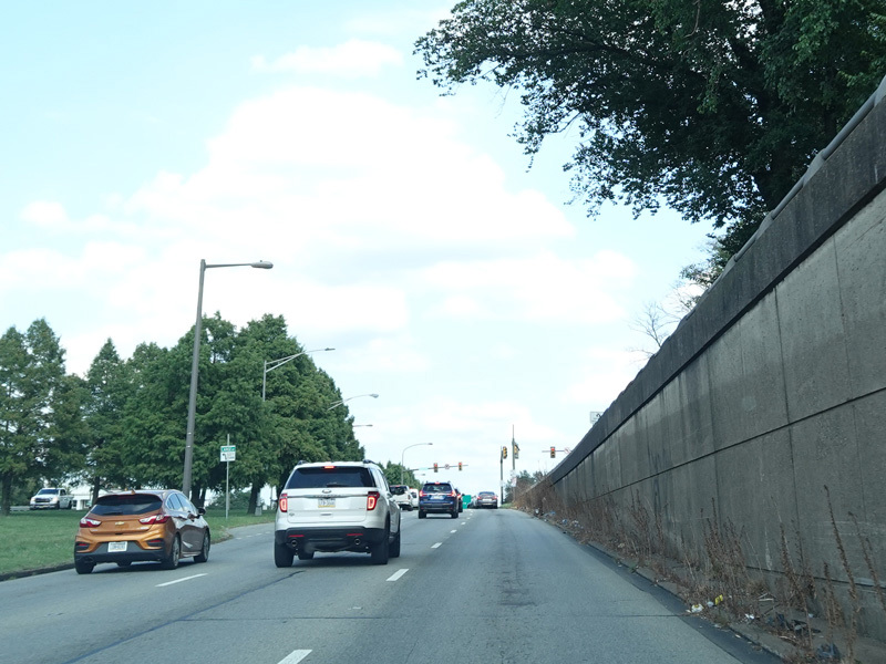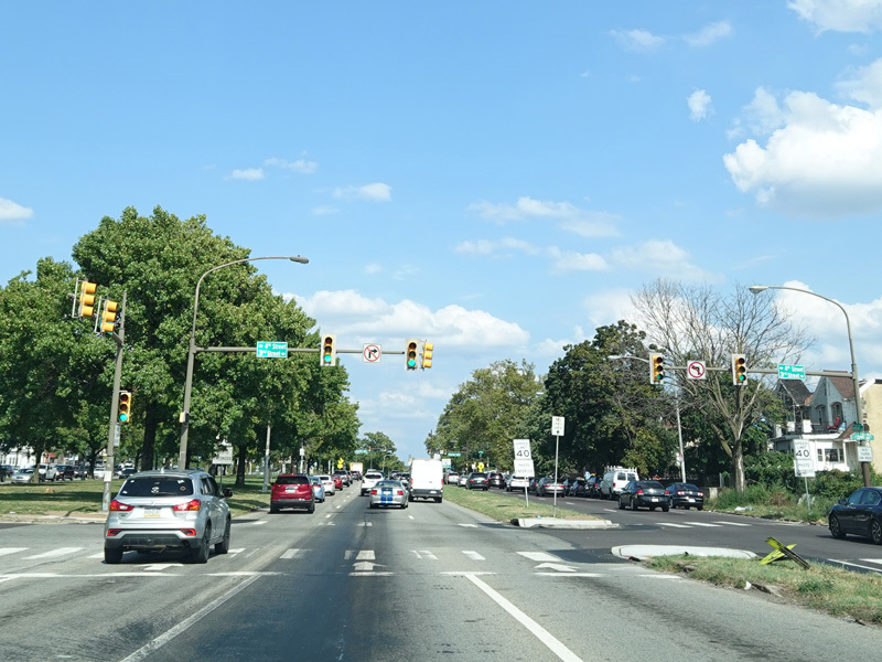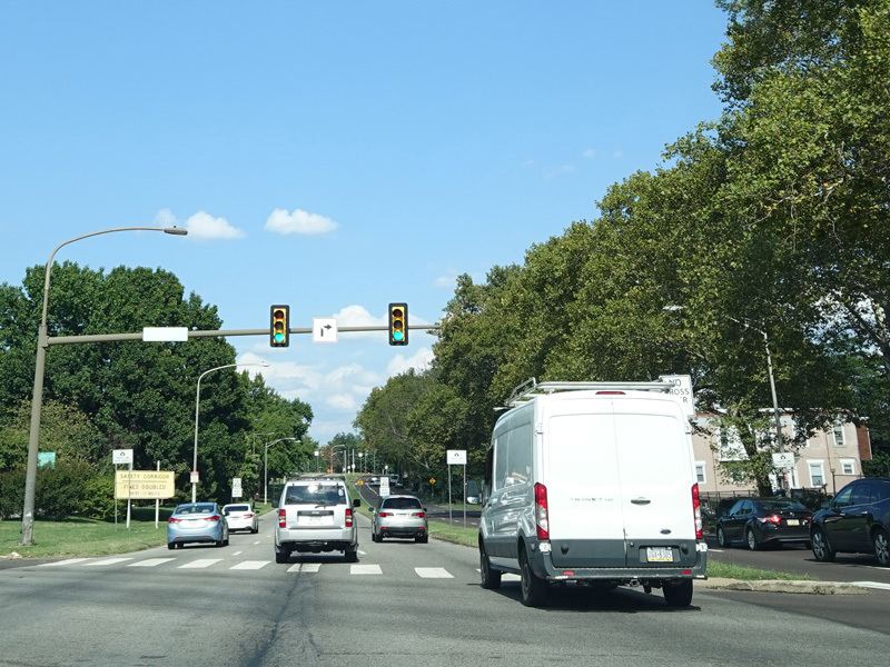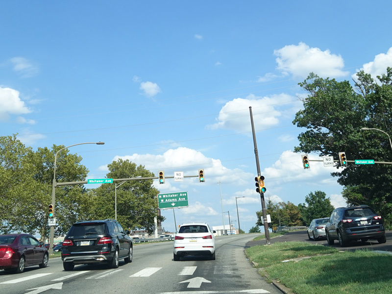 There is a crossover from the service road to the main road for Pratt Street and Bustleton Avenue.