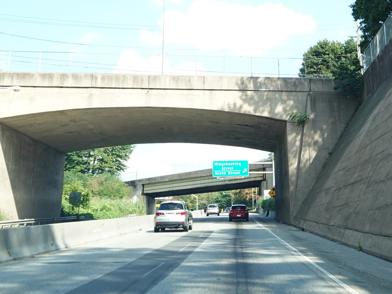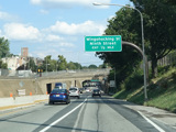 The ramp from City Avenue carrying US 1 merges with the ramp from exit 340B of the eastbound Schuylkill Expressway (I-76). Bear right to get on the expressway or left to stay on US 1.