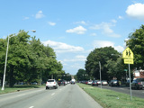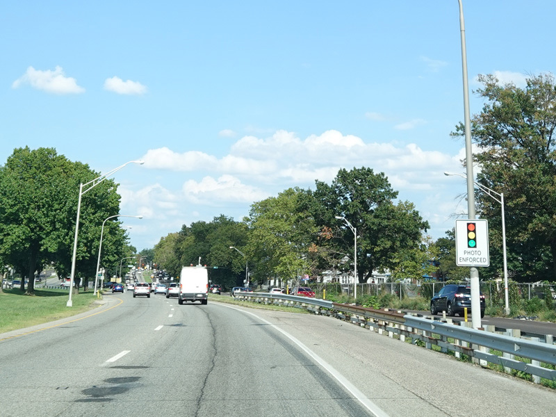 There is a crossover from the service road to the main road for Langdon Street and Summerdale Avenue.