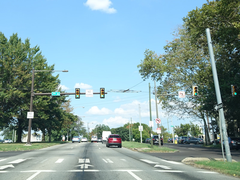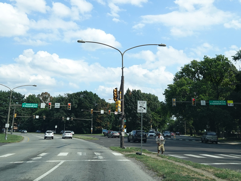 There are traffic lights at Langdon Street, Adams Avenue, and Summerdale Avenue.