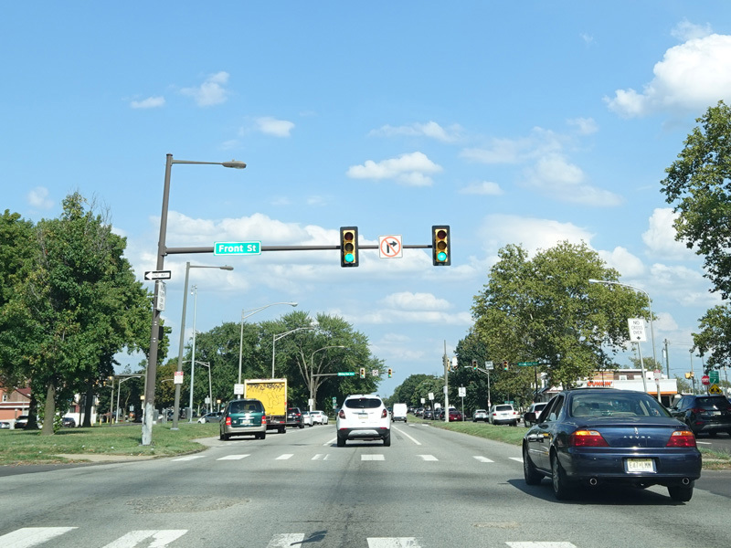 There are traffic lights at Front Street, Rising Sun Avenue, C Street, and Rorer Street.