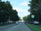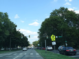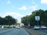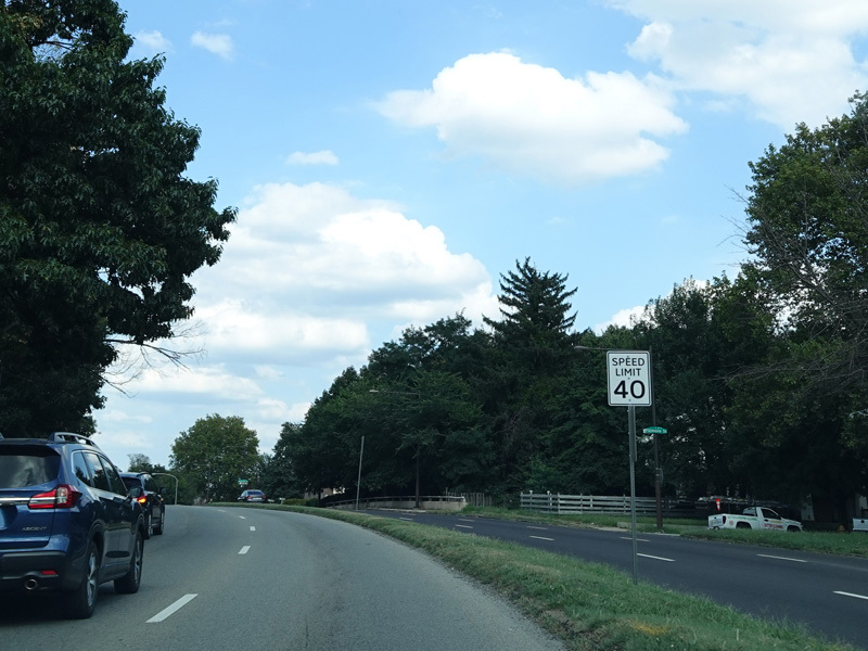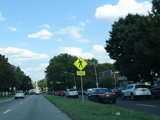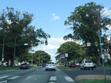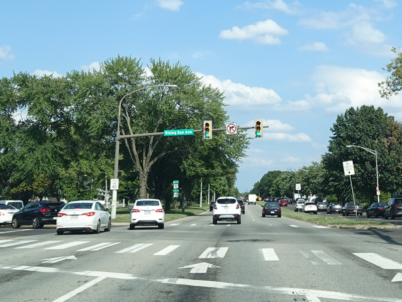 There is a crossover from the main road to the service road for Rising Sun Avenue and C Street.