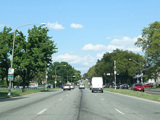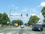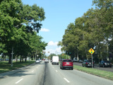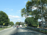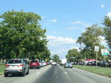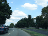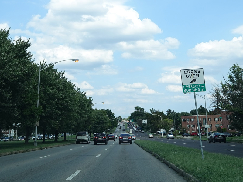 There is a crossover from the main road to the service road for Devereaux Avenue and Robbins Street (US 13).