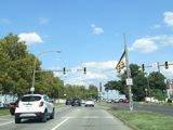 There is a crossover from the main road to the service road for Bridge Street, Cheltenham Avenue, and Oxford Avenue (PA 232).