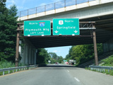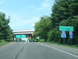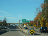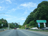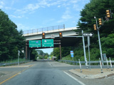 The ramp for the Mid-County Expressway (I-476) when travelling north passes through a pair of traffic light. Turn right at the first light to go south or left at the second light to go north. Continue straight ahead to get back on US 1.