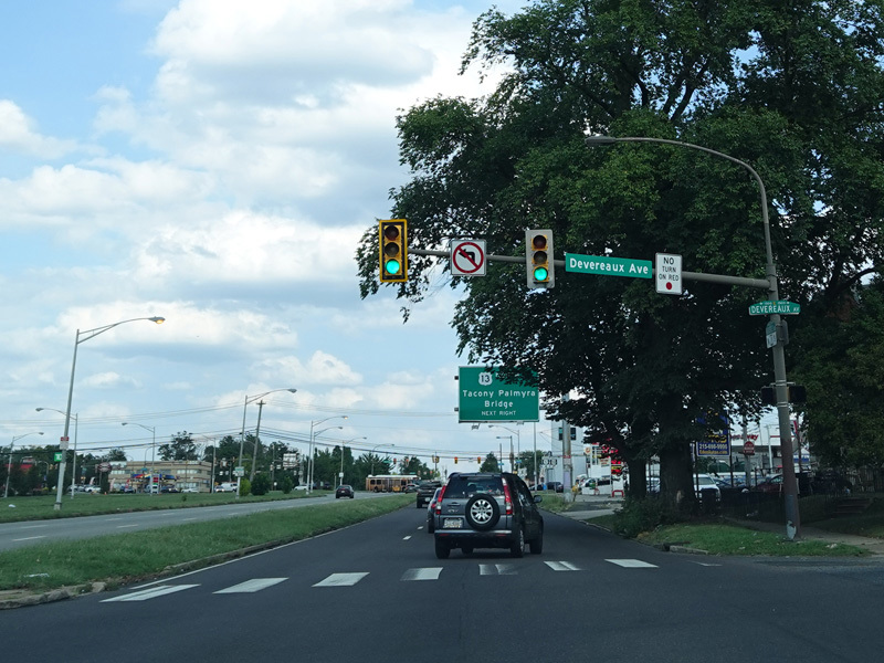 There is a traffic light at Bustleton Avenue. Turn onto Robbins Street just before the light for US 13, which splits off from US 1 here.
