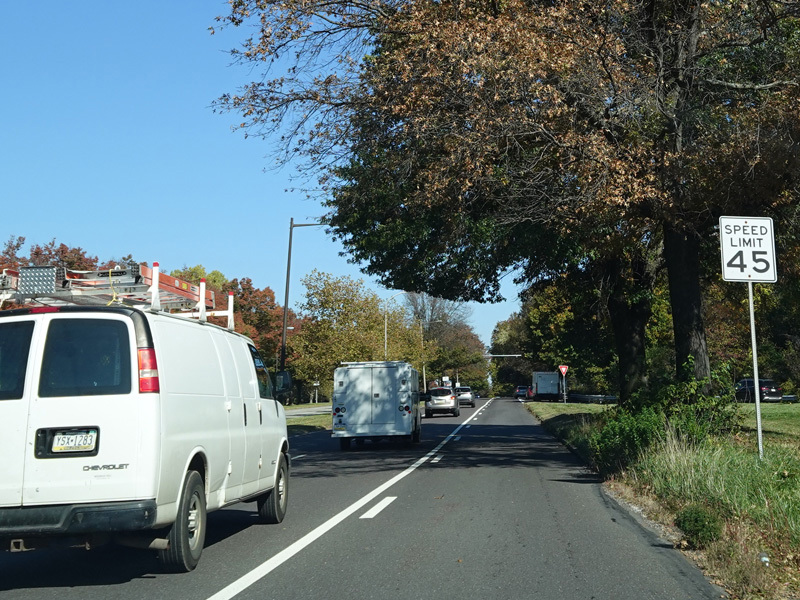 Skipping a couple of miles, there is a pair of exits for Woodhaven Road (PA 63).