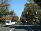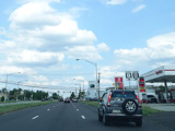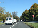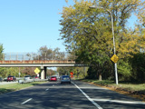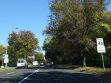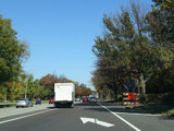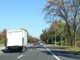 At the city line, the service road narrows down to a single lane and merges into the main road.
