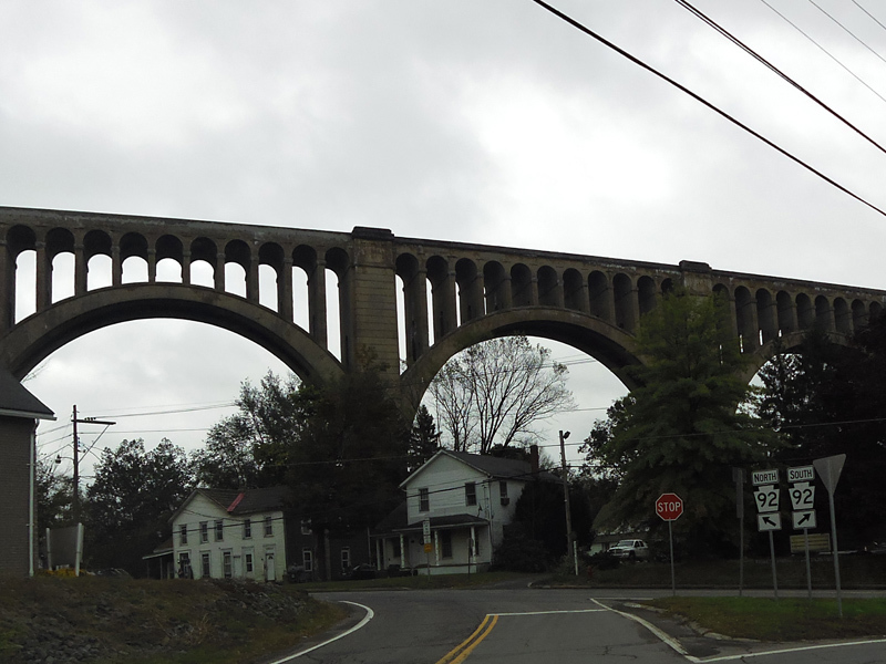 The ramp from Lackawanna Trail to State Street (PA 92) in Nicholson splits. Bear left to go north or right to go south.