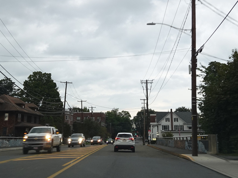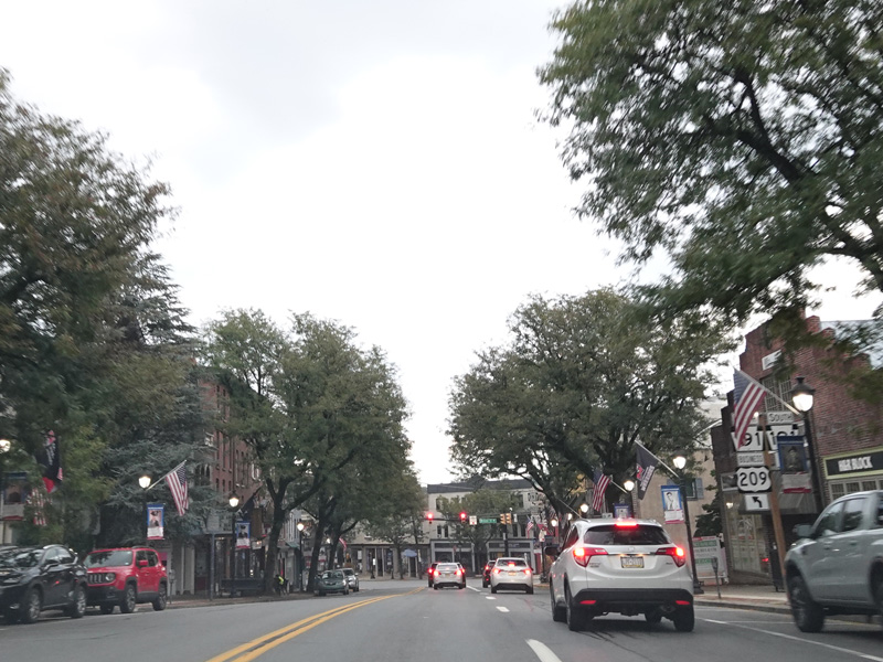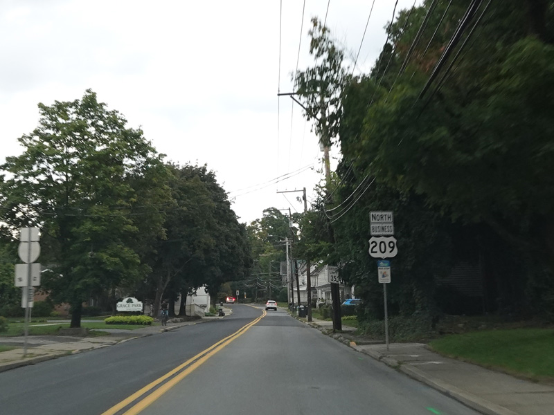The two routes split at an uncontrolled intersection. Turn left onto North 4th Street for PA 191. Continue straight ahead on Main Street to stay on Business US 209.