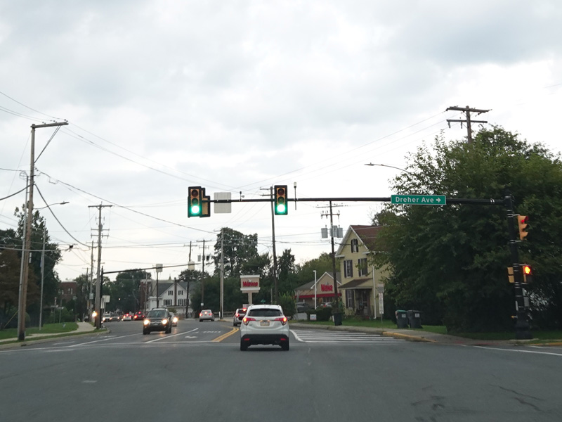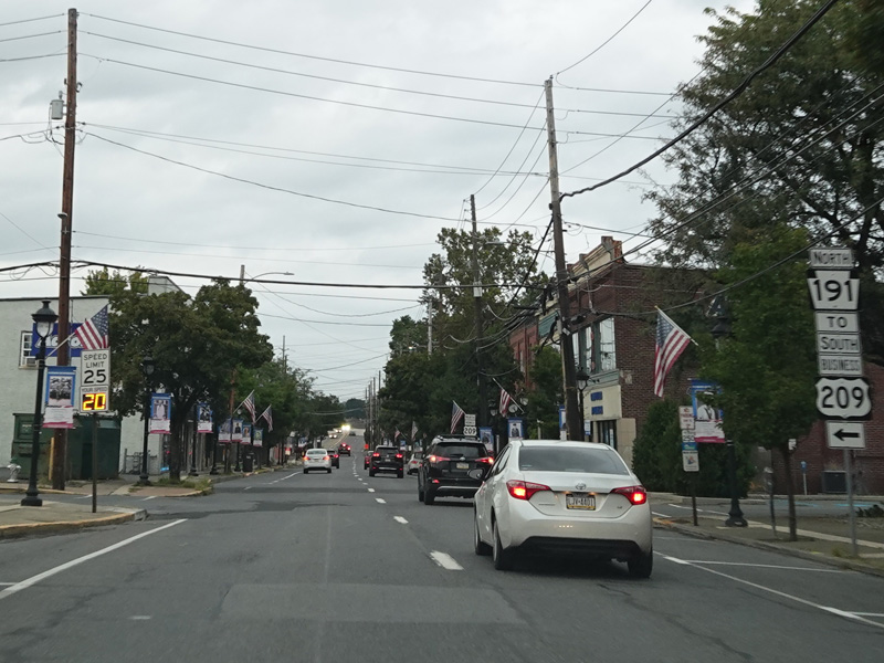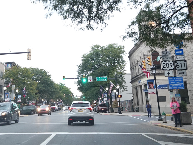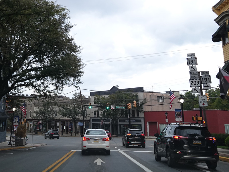There is a traffic light at Broad Street (PA 191). Turn left to go south. Northbound PA 191 is multiplexed with Business US 209 straight ahead.