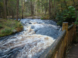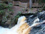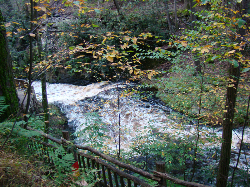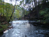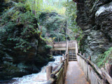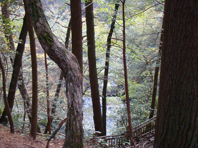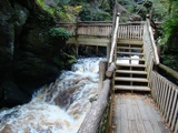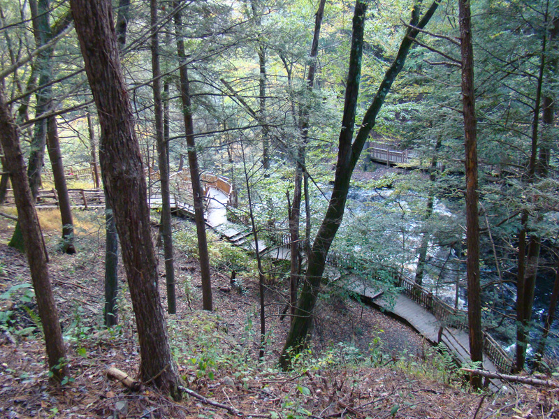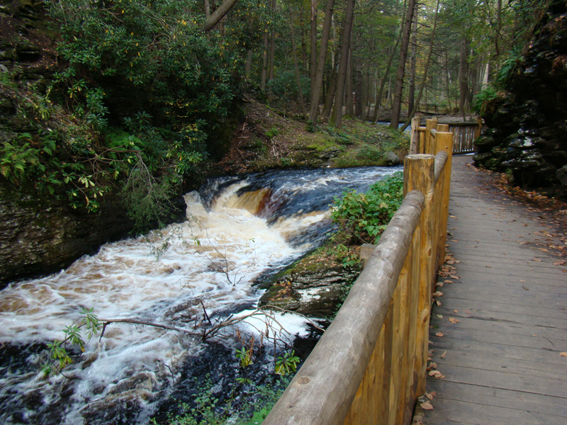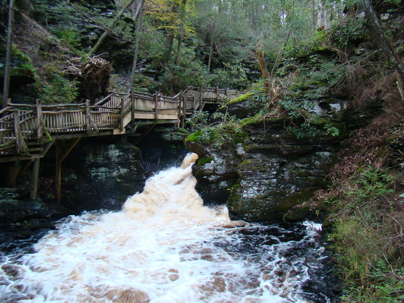 Bushkill Falls is located about a mile up Bushkill Falls Road from US 209 in the Delaware Water Gap National Recreation Area.