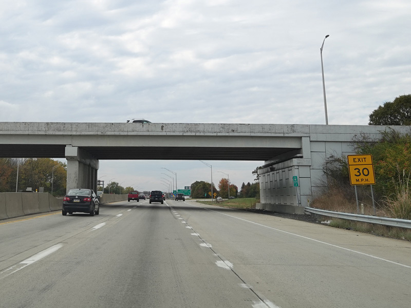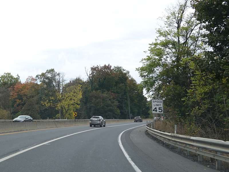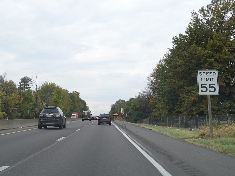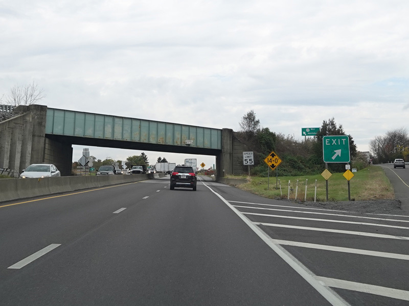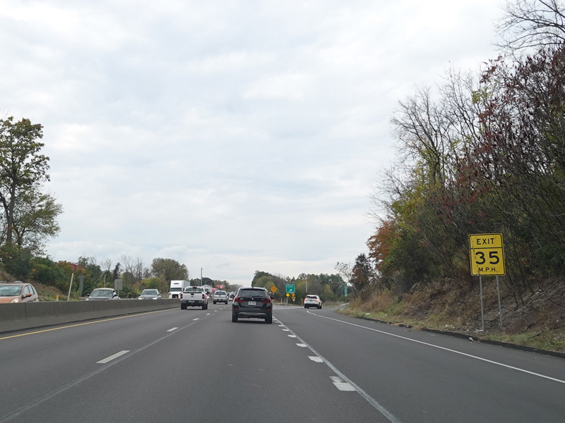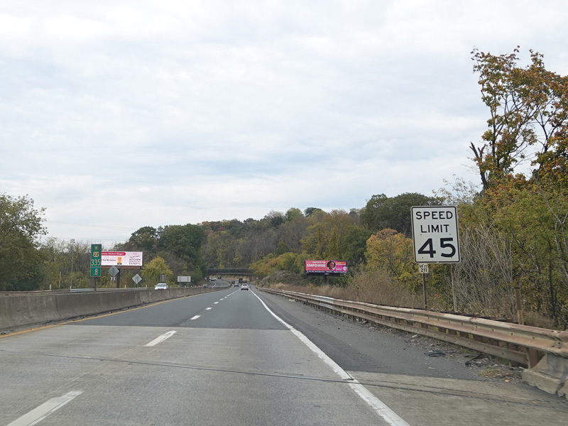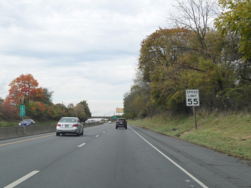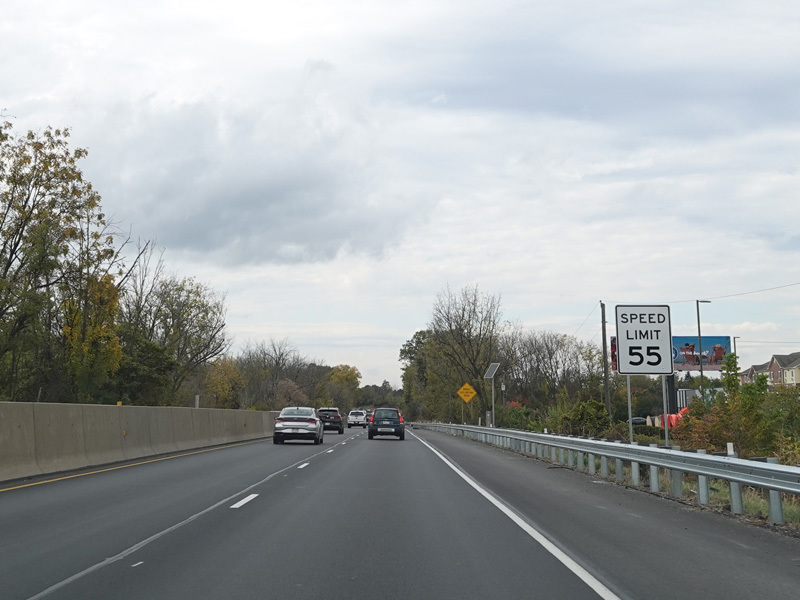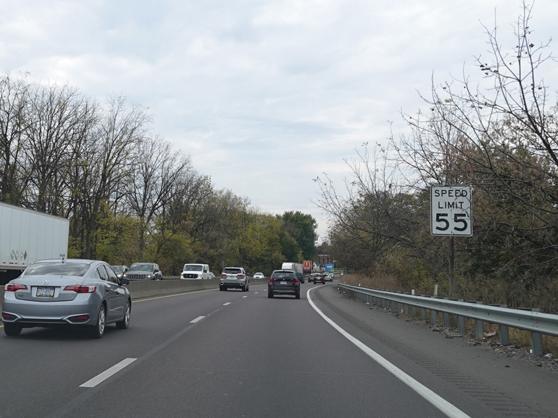 The speed limit goes up to 55 MPH. There is a pair of exits for PA 33.
