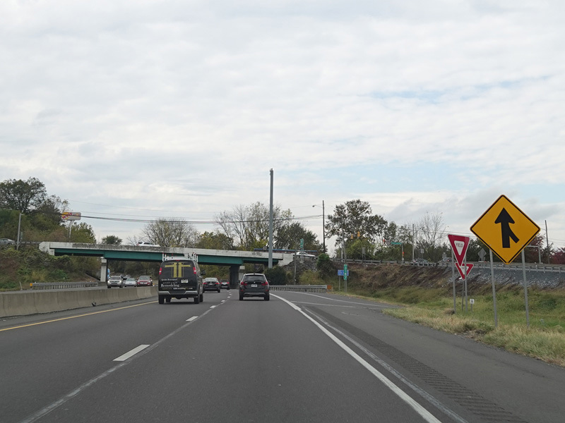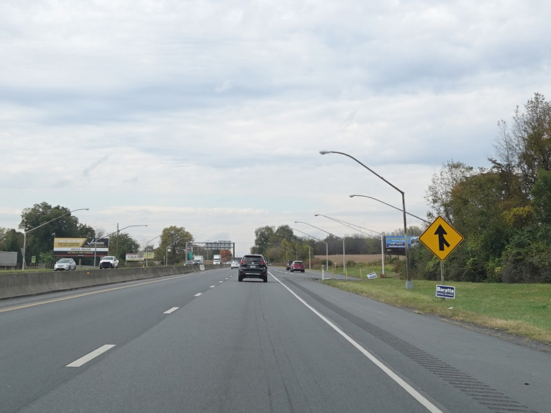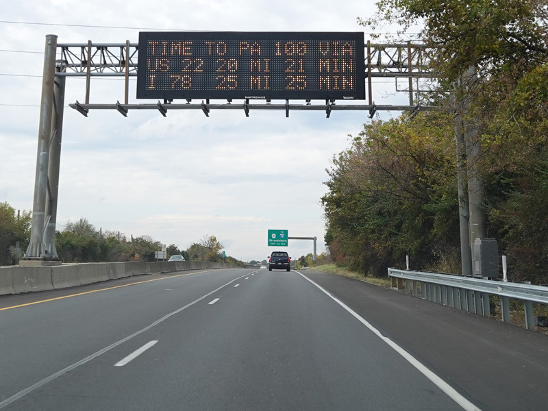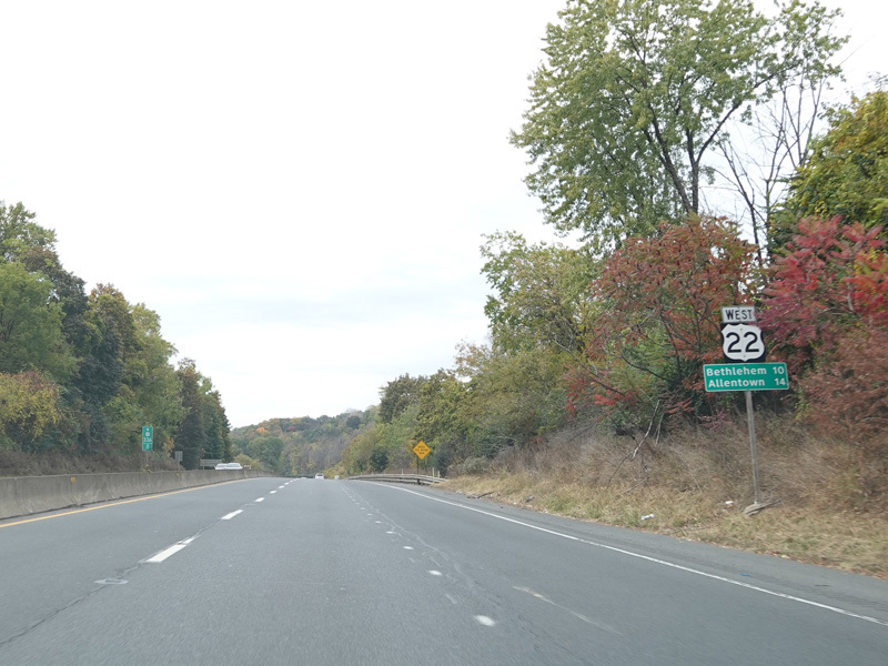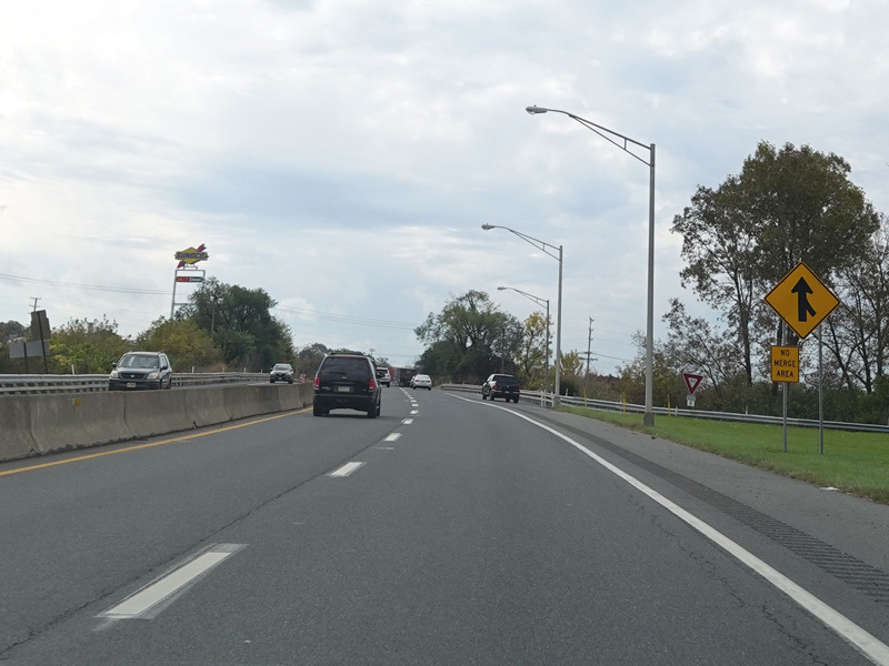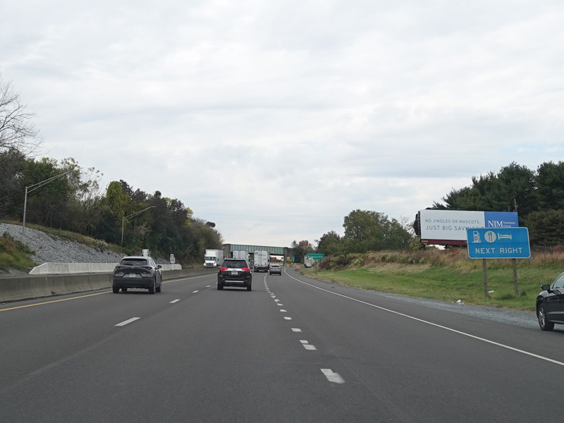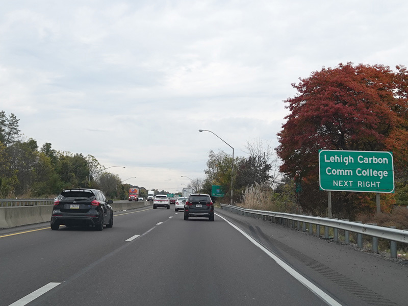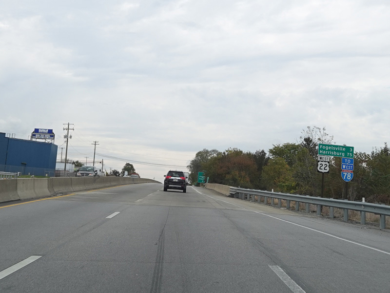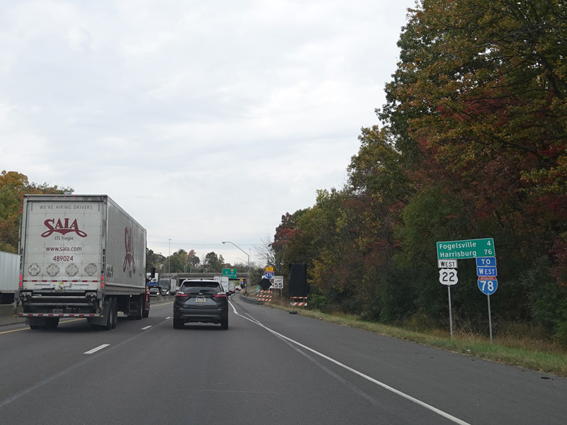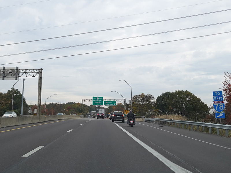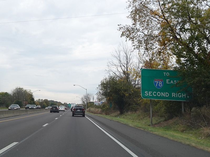 The Lehigh Valley Thruway ends here, merging with I-78. The two routes are multiplexed from here to Fredericksburg. There is some advance signage for exits 49B-A before the merge.