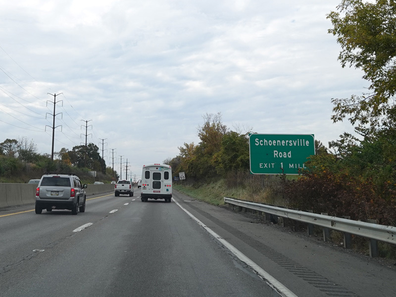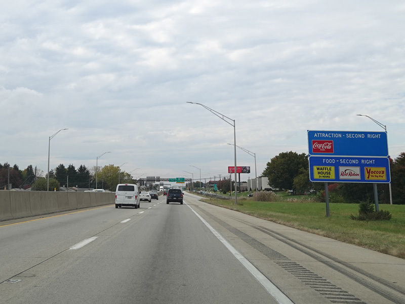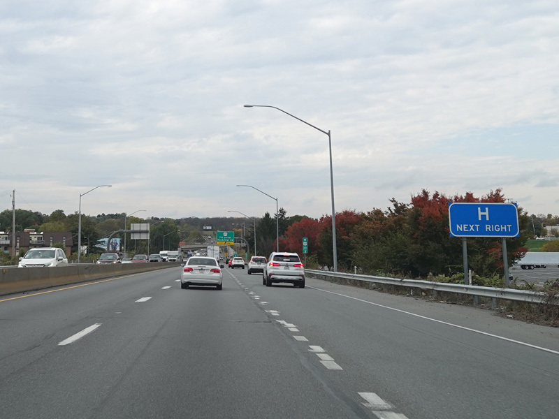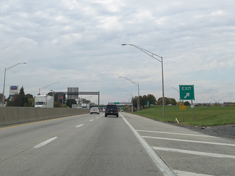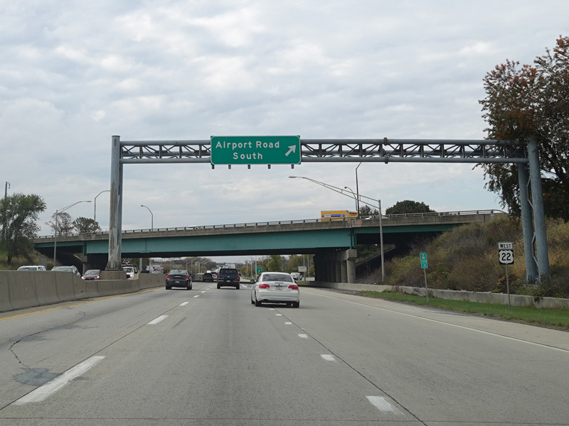 There is a pair of exits for Airport Road (PA 987). The state route designation begins here and extends to the north.