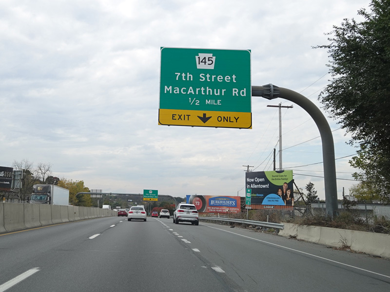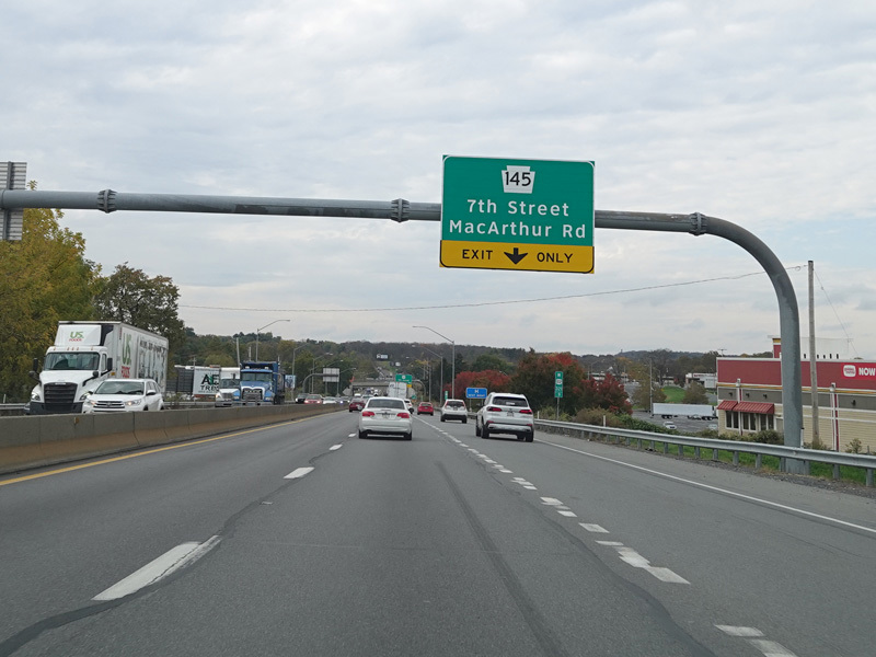 There is an exit for MacArthur Road (PA 145), which changes names to become 7th Street south of here.