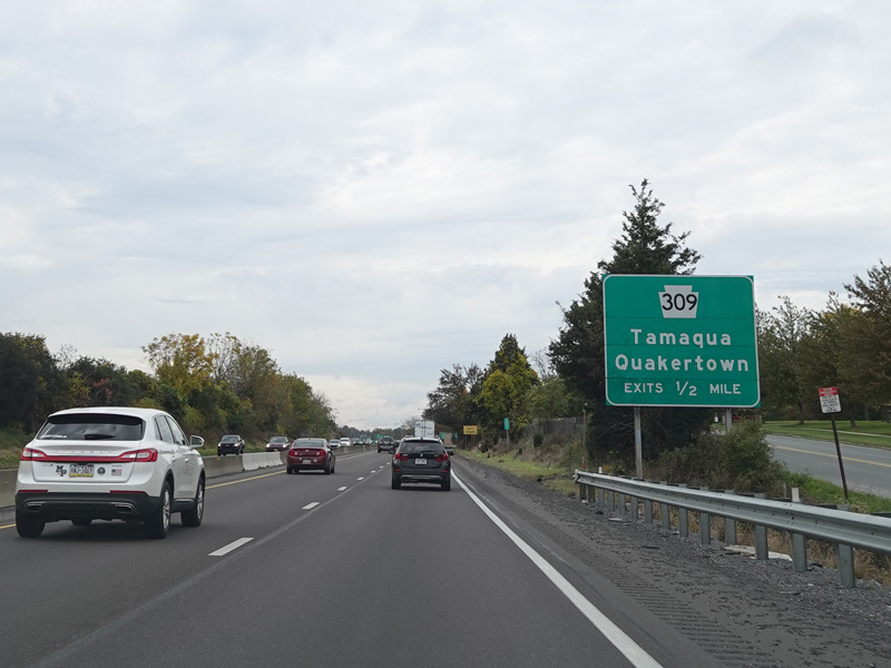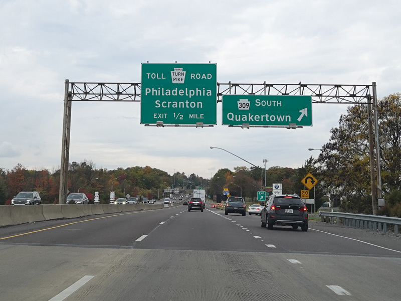 There is an exit for the Northeast Extension of the Pennsylvania Turnpike (I-476).