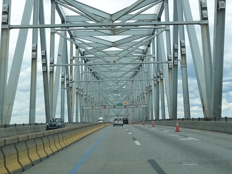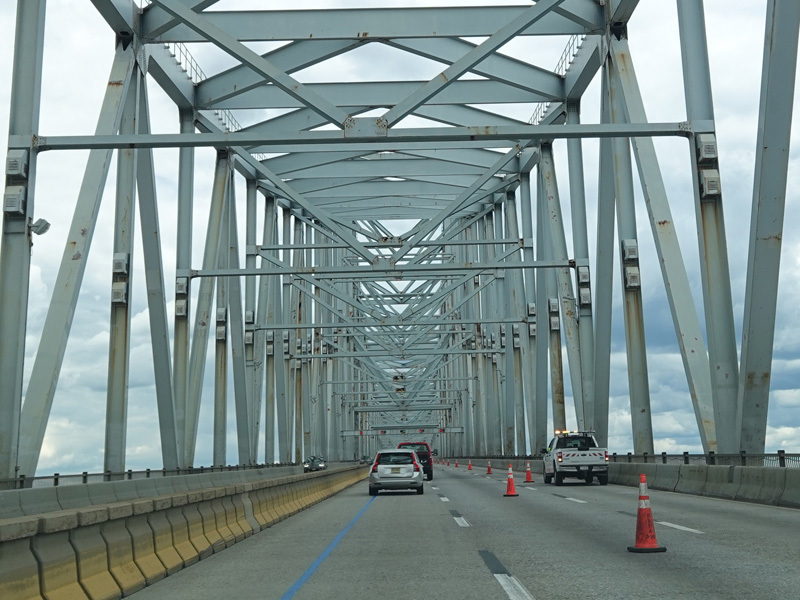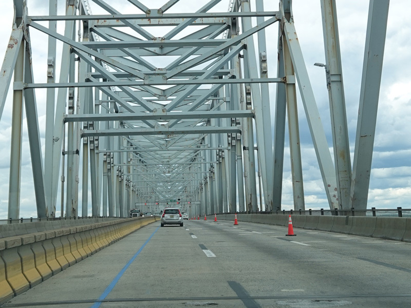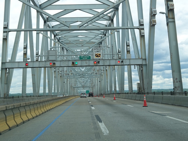 The Commodore Barry Bridge carries US 322 across the Delaware River from New Jersey to Pennsylvania.