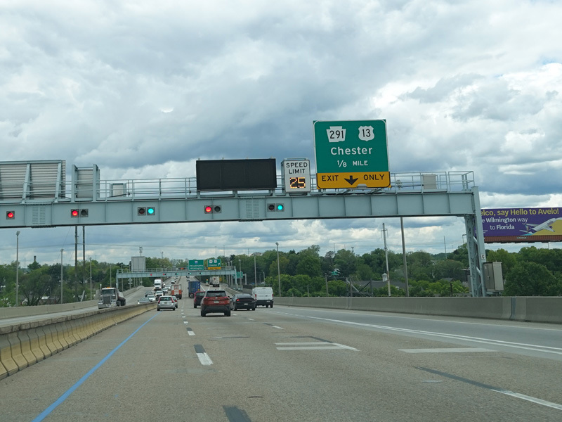 Coming off the bridge, there is an exit for West 2nd Street (PA 291) and West 9th Street (US 13).