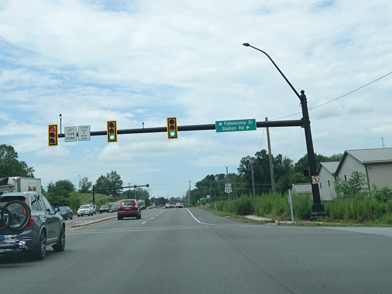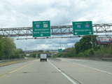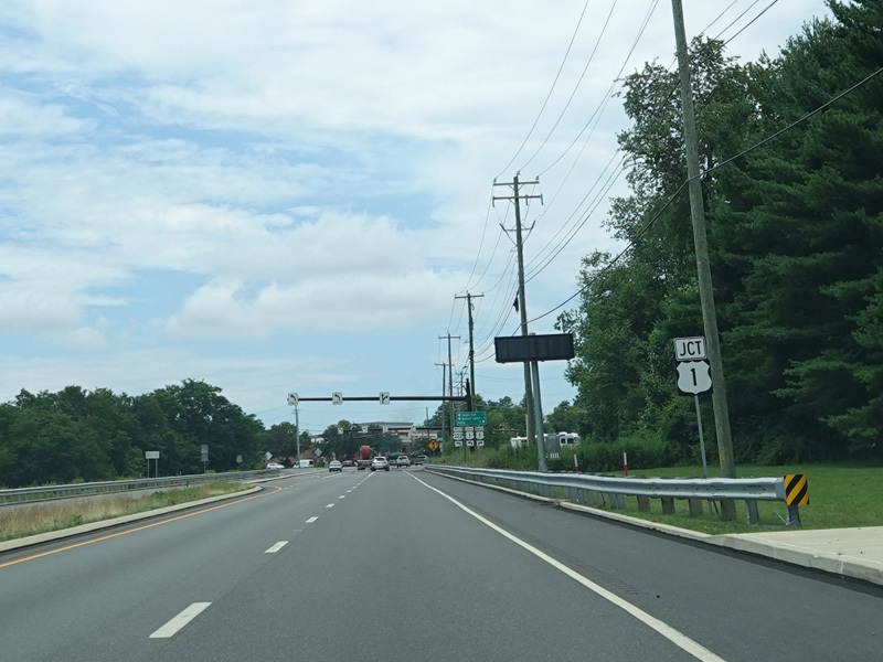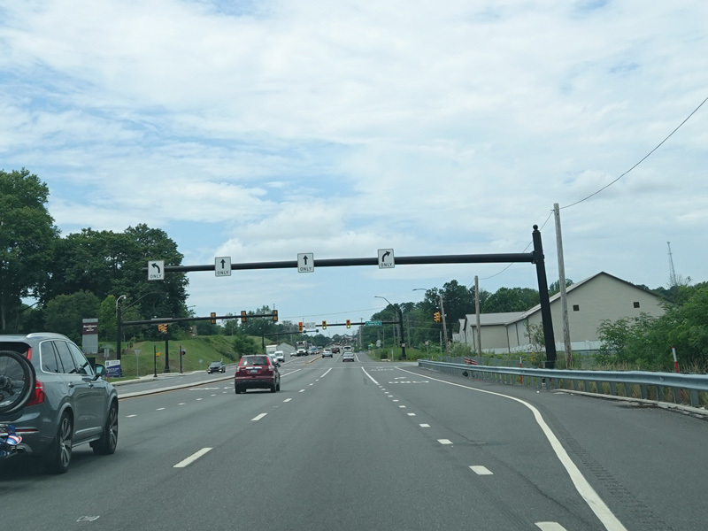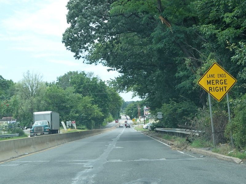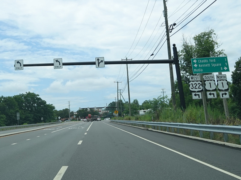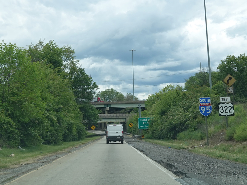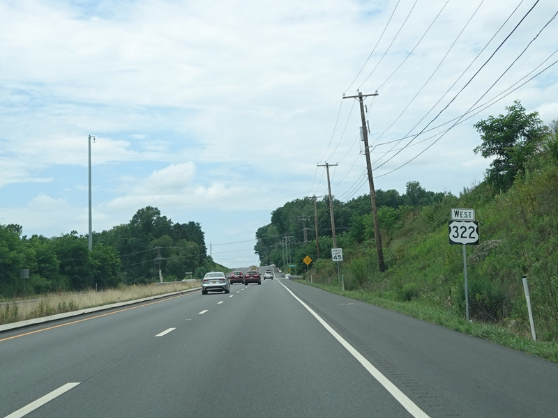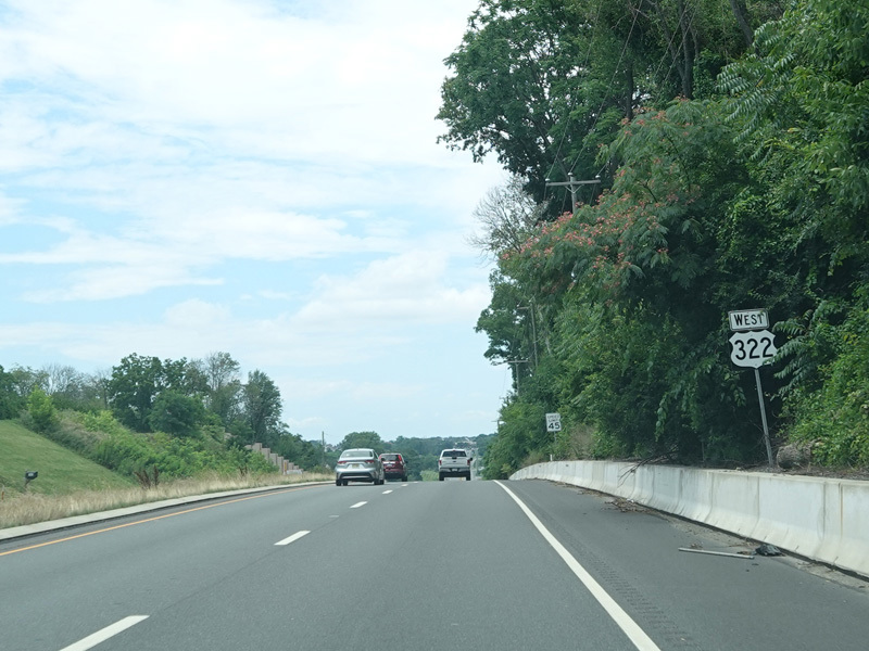 After a couple of exits, US 322 splits off from the Delaware Expressway (I-95) and runs west as a four-lane divided highway. Here, it is called Conchester Highway.