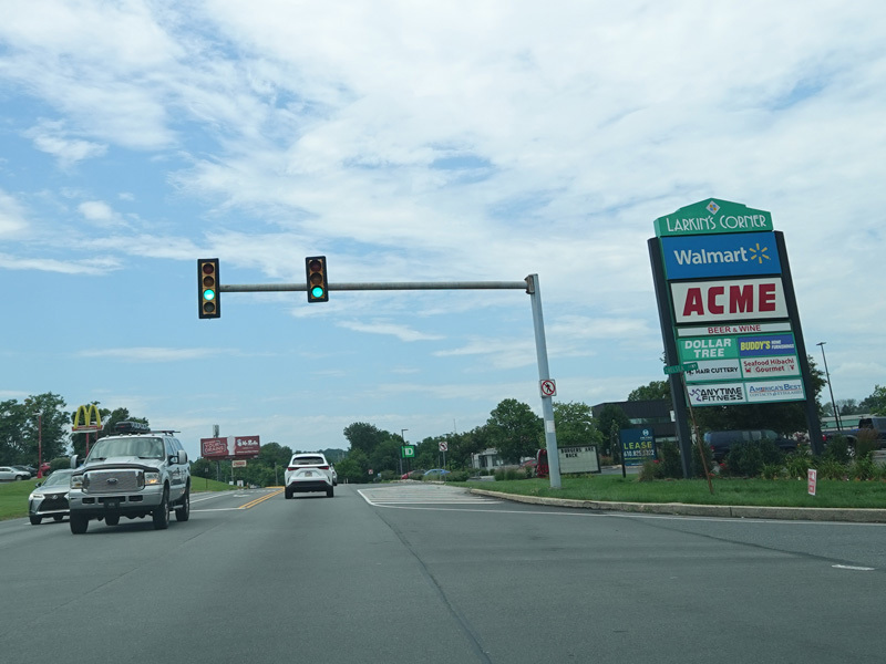 Conchester Pike ends at a traffic light at Baltimore Pike (US 1). Turn right to go north. Turn left to go south and to stay on US 322.