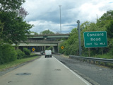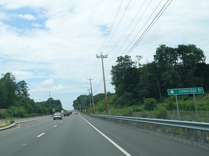 Conchester Highway continues to the west. Cambridge Drive begins on the left at an uncontrolled intersection. There is an overpass over Smithbridge Road, but there is no interchange.