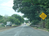 Conchester Highway widens to become a four-lane divided road with a grass median.
