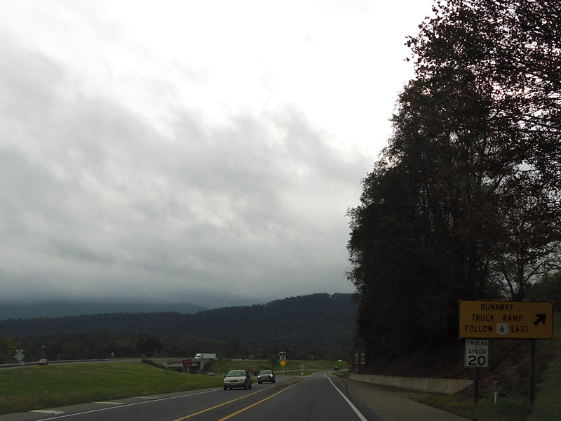 The roadway splits. Bear left onto West Tioga Street for Business US 6. Bear right to stay on the mainline of US 6.