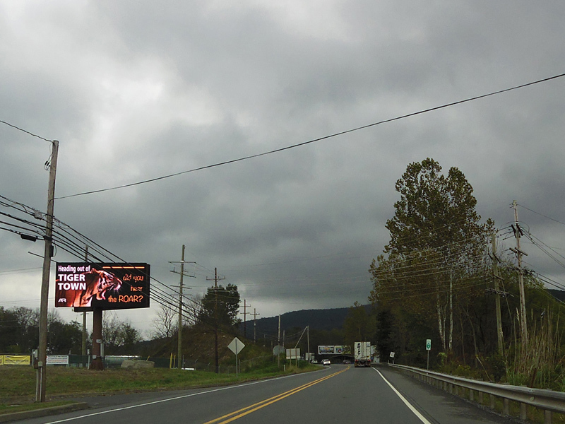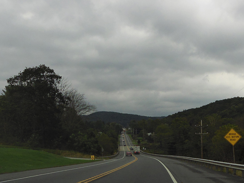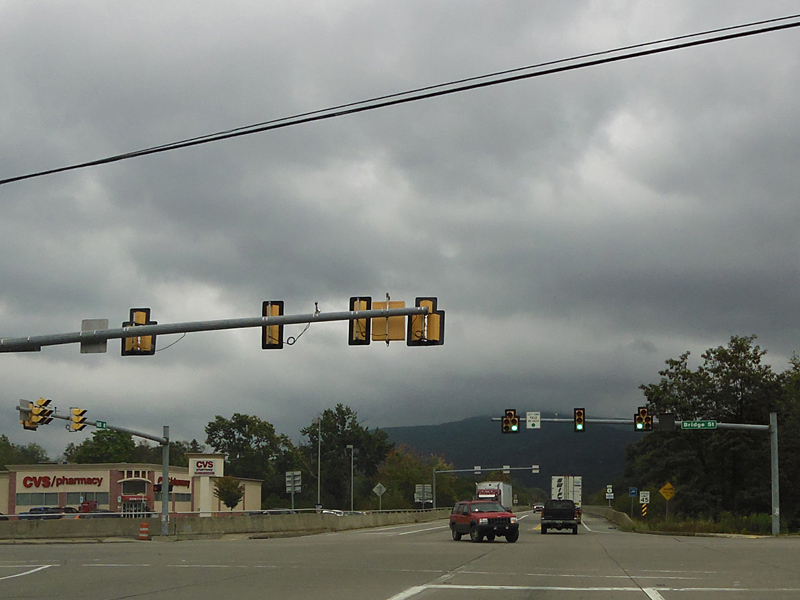 There is a traffic light at Bridge Street (PA 29). Turn left to go north or right to go south.
