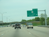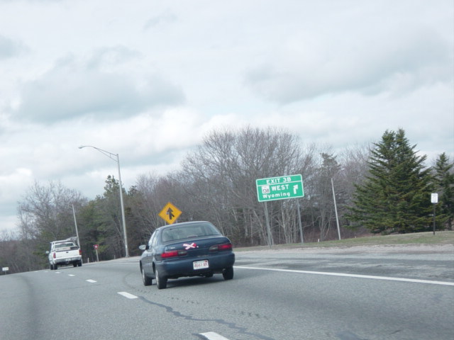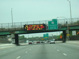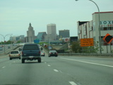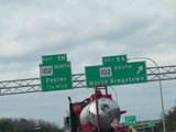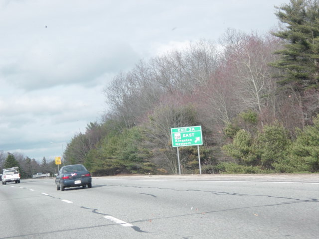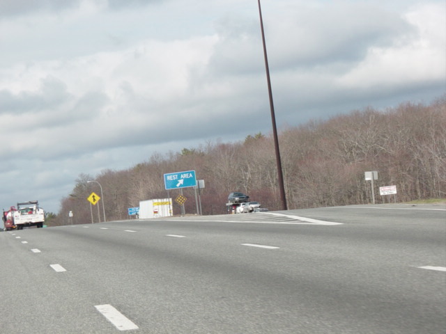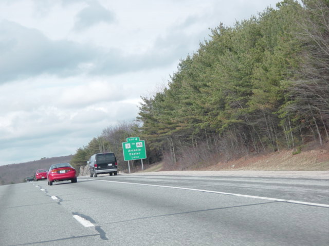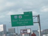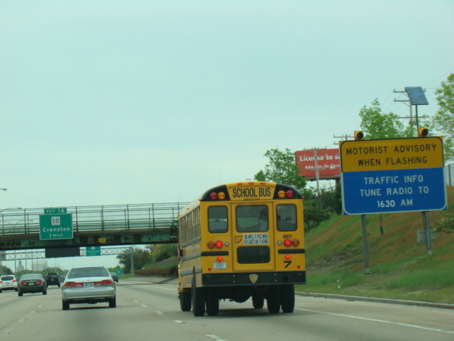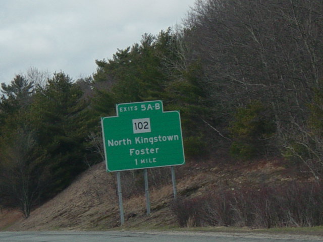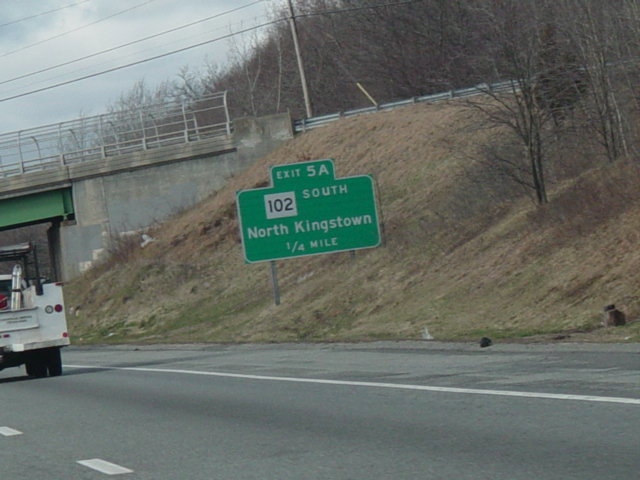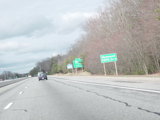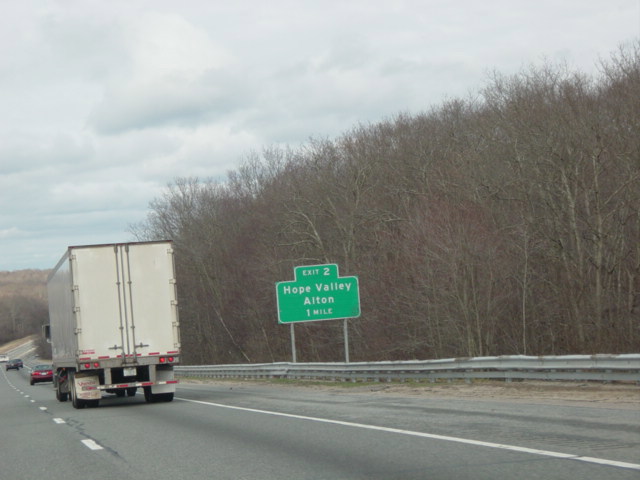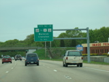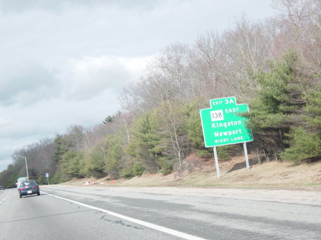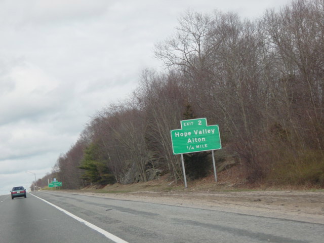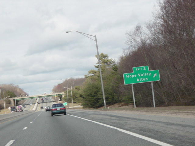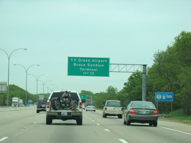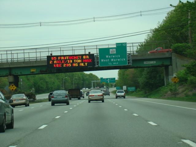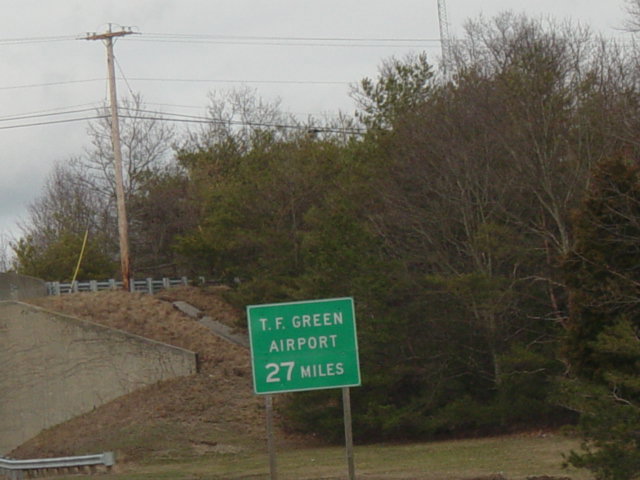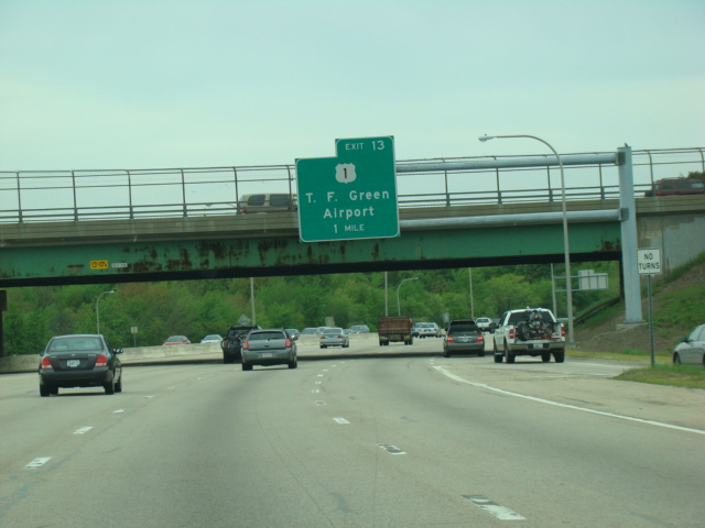 These photographs show northbound I-95 in the southern part of Rhode Island as it appeared in 2006. All of the signs shown in these pictures have since been replaced.