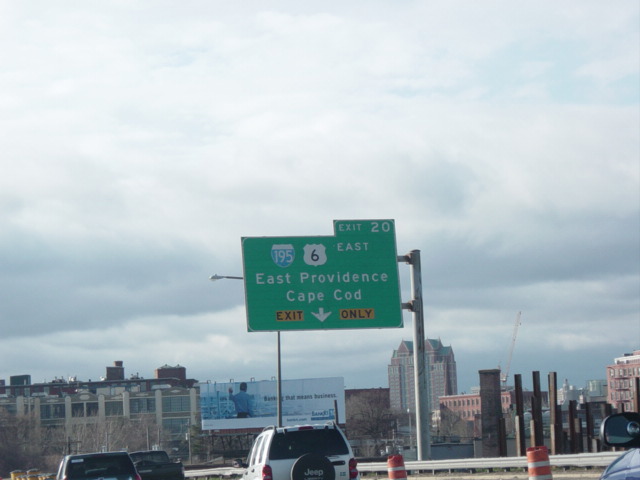 As of 2006, exit 20 provided access to I-195/US 6. Construction since then has resulted in a change of exit numbers. Exit 19 now provides access to I-195/US 6.