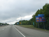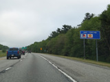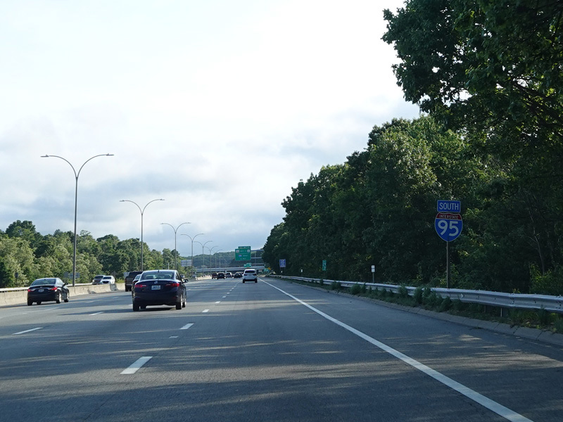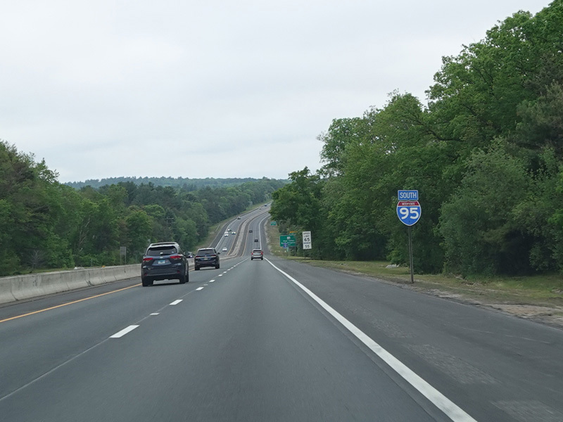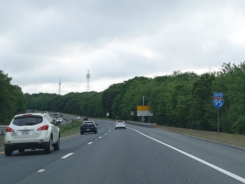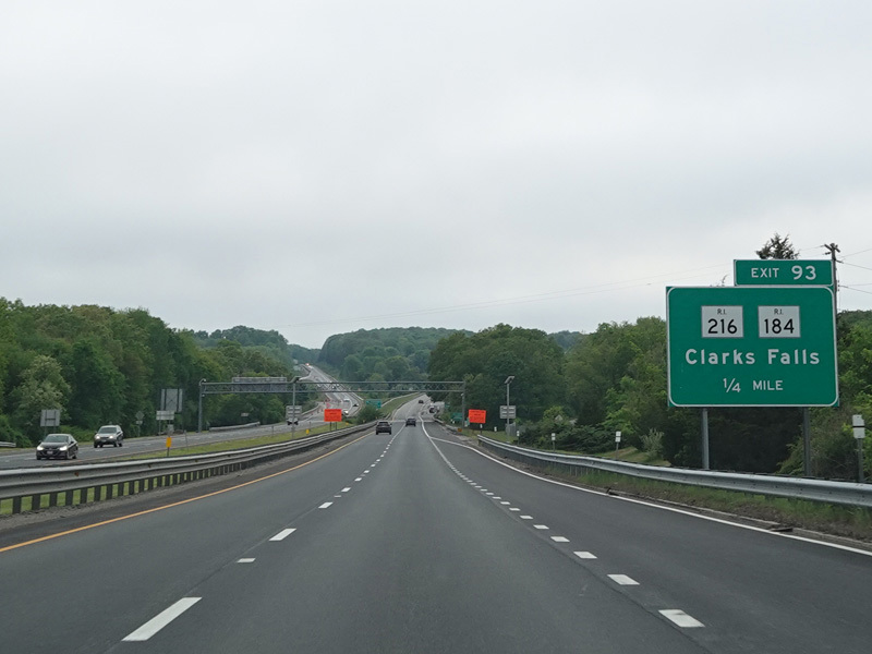 I-95 continues straight ahead into Connecticut. There is some advance signage for exit 93 that erroneously uses Rhode Island route shields. While CT 216 turns into RI 216 at the state line, CT 184 remains in Connecticut.