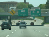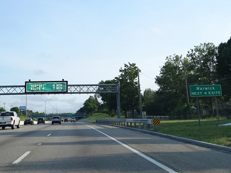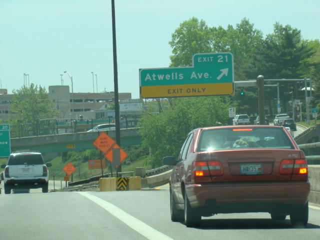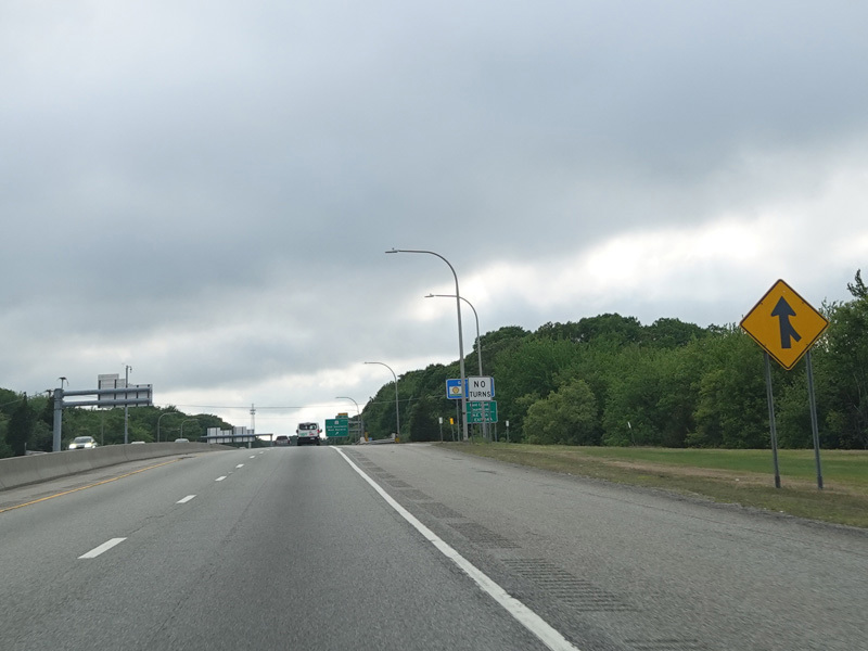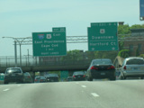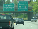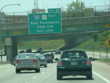 Exits 22C-B-A are for Downtown Providence, US 6 west, and the Huntington Expressway (RI 10).