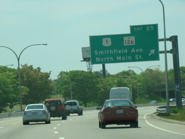 Exit 25 is for North Main Street (US 1) and Smithfield Avenue (RI 126).