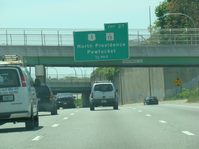 Exit 27 is for George Street (US 1) and Mineral Spring Avenue (RI 15).