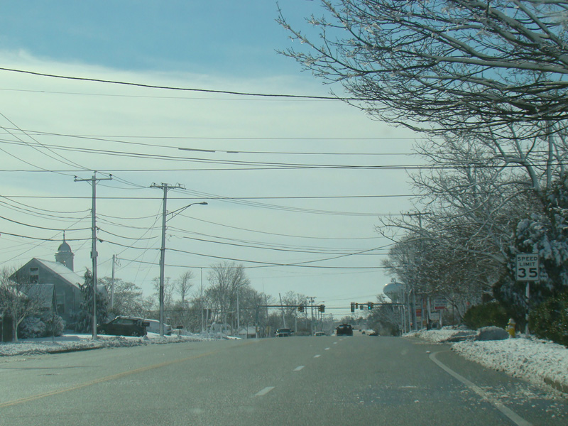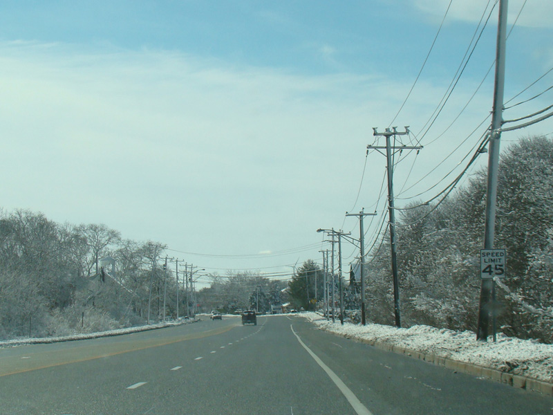 Skipping a little over a mile, Point Judith Road runs south through Narragansett as a four-lane undivided road.