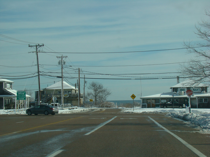 Point Judith Road ends at a stop sign at Ocean Road. Turn right for the Point Judith Lighthouse.