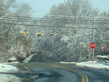Ministerial Road ends at a traffic light at Kingstown Road (RI 138). Turn right to go east or left to go west. Plains Road is straight ahead. There is no route signage at this intersection.