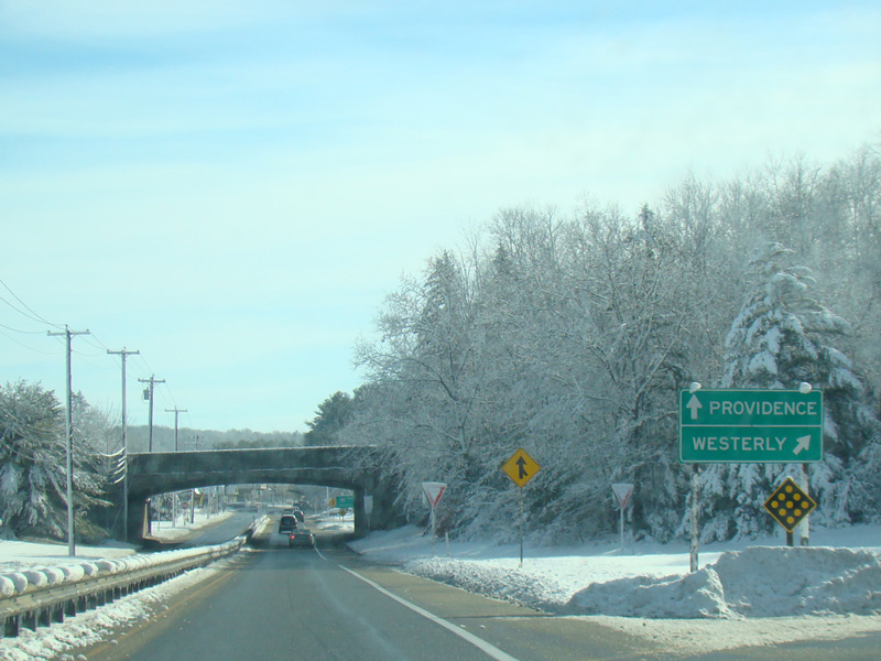 Skipping many miles to the east and north, RI 138 splits off from the Fall River Expressway (RI 24) and runs north along Main Road through Tiverton to the border with Massachusetts, where it becomes MA 138.