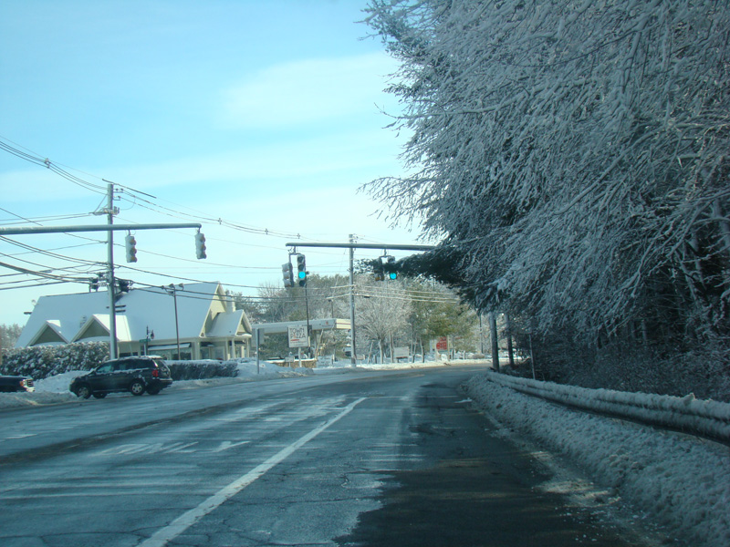 There is a traffic light. Kingstown Road splits off to the right as RI 108. RI 138 continues straight ahead as Mooresfield Road.