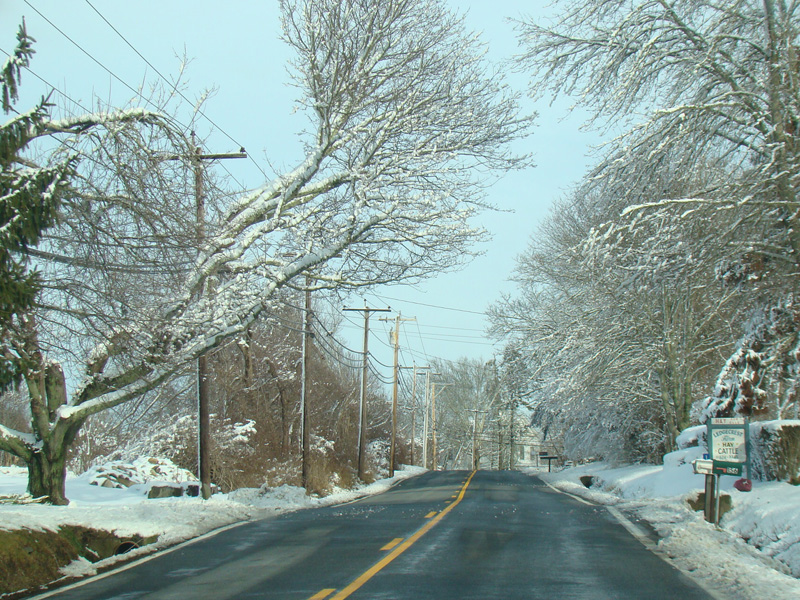Bear right onto Stone Church Road to stay on RI 179. East Road continues straight ahead as an unnumbered state route.