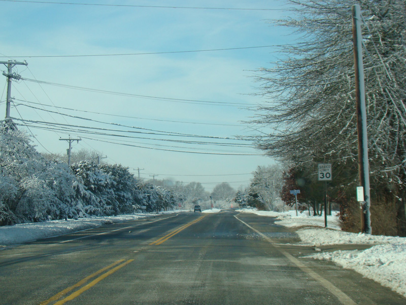 Skipping a few miles to the south, Old Post Road splits off from US 1 and runs west as a two-lane undivided road.