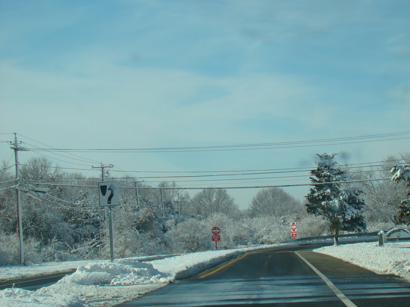 Old Post Road ends here at US 1. All motorists must merge in going north.