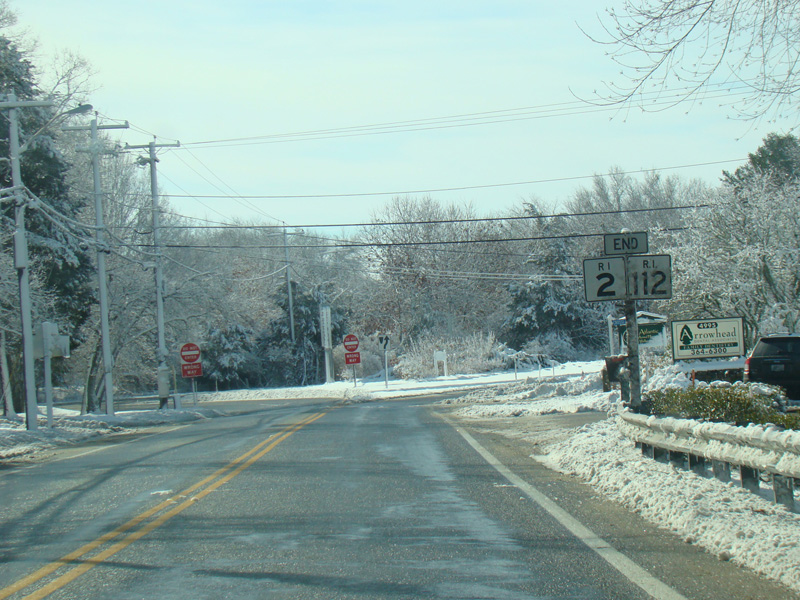 Carolina Back Road (RI 112) merges in from the right, and the two routes are multiplexed for the remainder of their length.