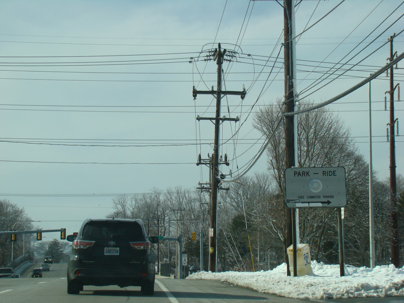 Frenchtown Road begins at Post Road (US 1) in East Greenwich and runs west as a four-lane divided road. There are a couple of turnarounds.