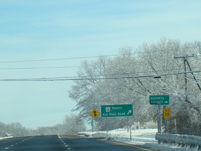 US 1 is a major route running from Key West in Florida to the Canadian border in Maine. Prior to the construction of I-95, it was the main route along the East Coast. In Rhode Island, US 1 runs east along the Atlantic Ocean to Narragansett and then north along Narragansett Bay to Providence. For much of its length, it is a four-lane divided highway with most exits only directly accessible from one side, avoiding the need for overpasses. Turnarounds are provided so that vehicles travelling in each direction can access the exits on the other side. This is a similar configuration to what exists on the Ocean Parkway on Long Island. US 1 is an ordinary local road with traffic lights in Westerly near the Connecticut border and in Providence and its suburbs near the Massachusetts border.