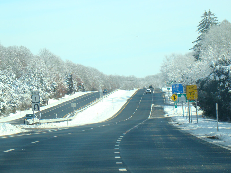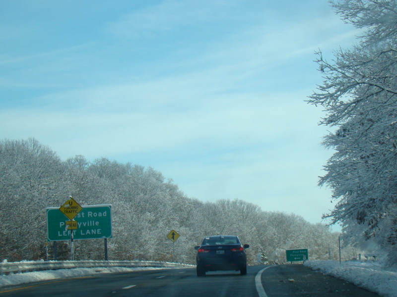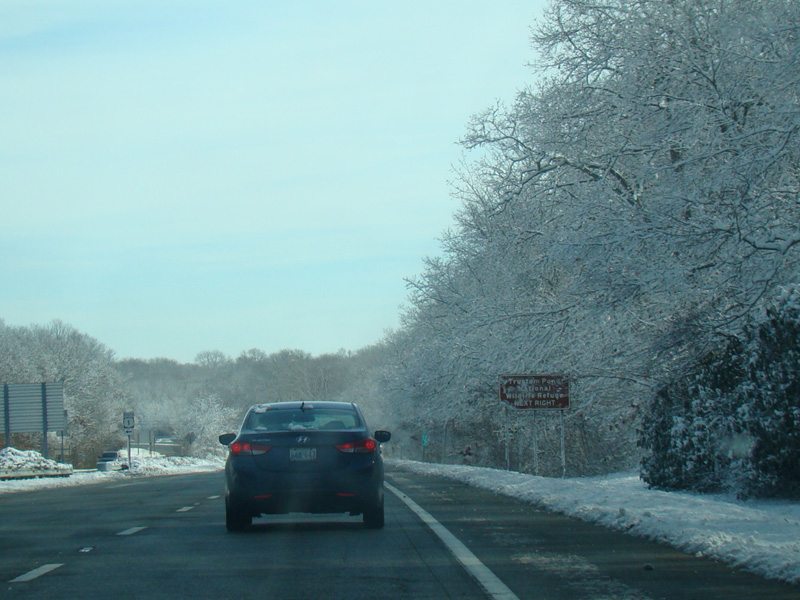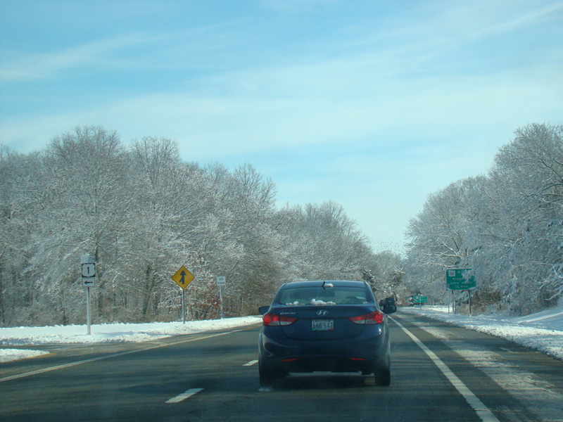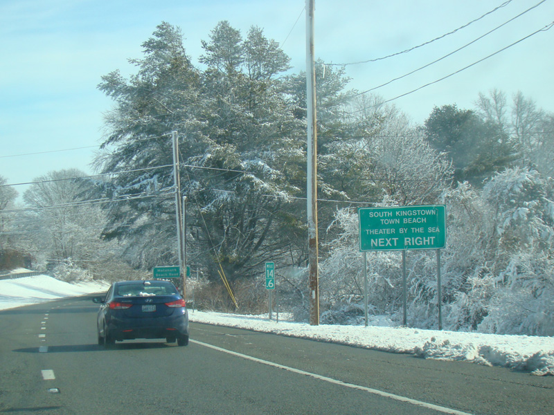 Skipping a couple of miles, there is a turnaround leading to Post Road (RI 1A). The route number is not posted here.