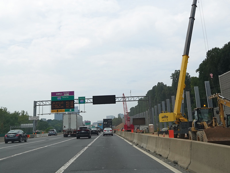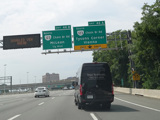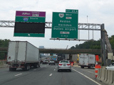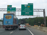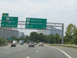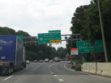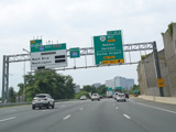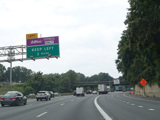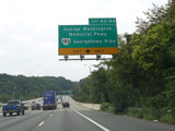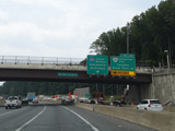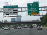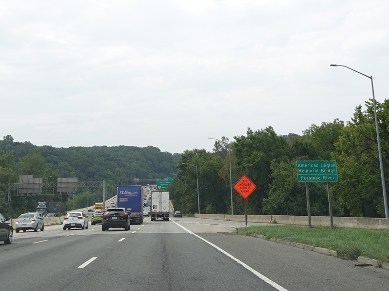 The American Legion Memorial Bridge carries the Beltway across the Potomac River from Maryland to Virginia. Exits 43-44 are for the George Washington Memorial Parkway and Georgetown Pike (VA 193).